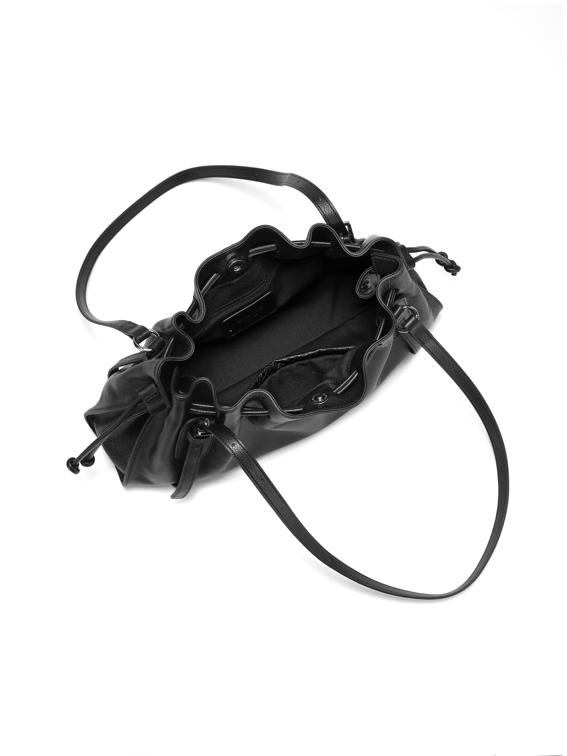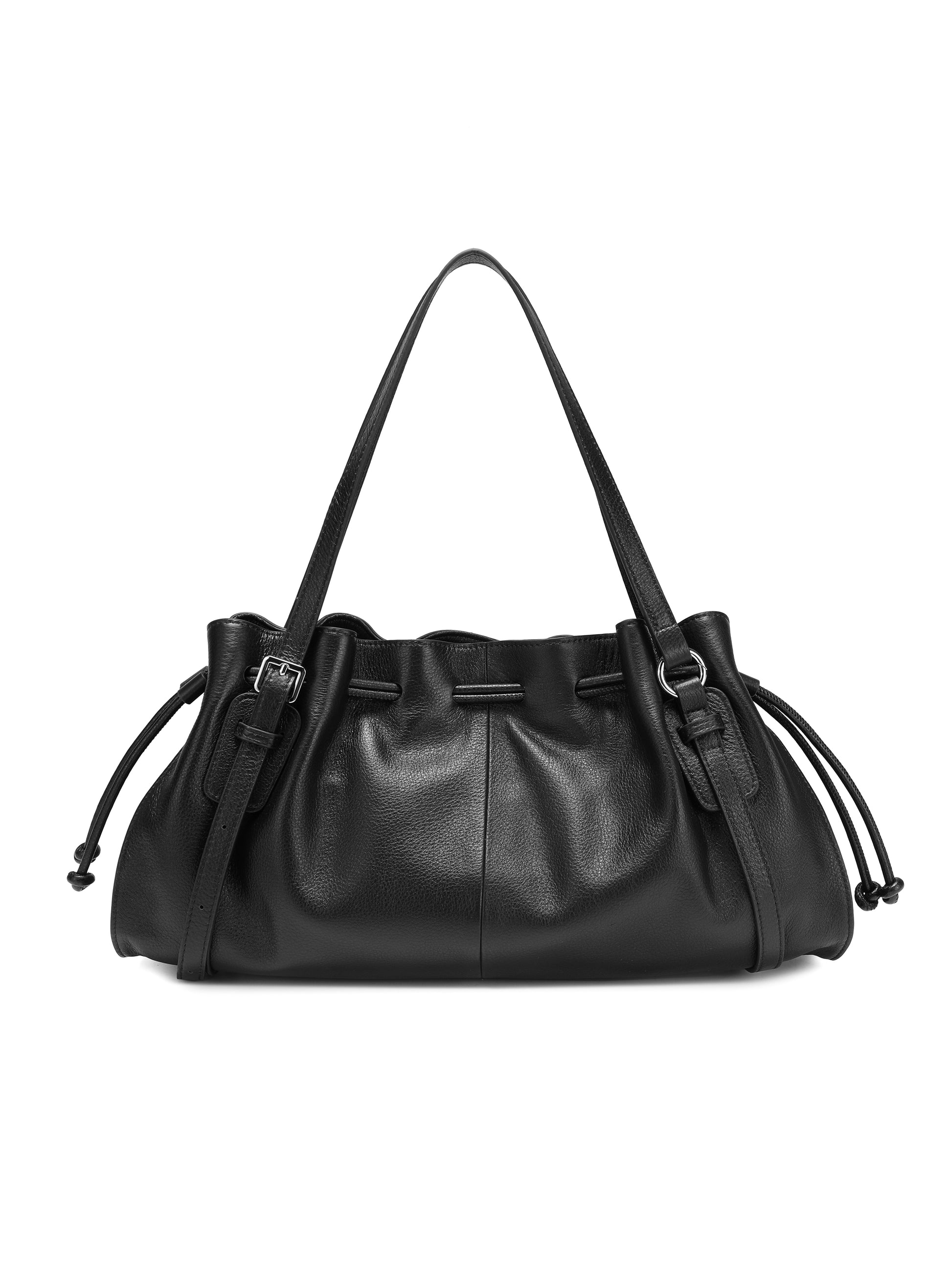 This women’s shoulder handbag is crafted from genuine leather and features a gathered, ruched top for a naturally soft silhouette.